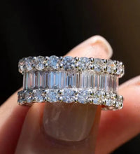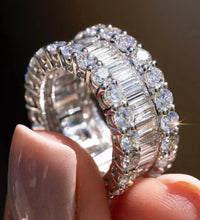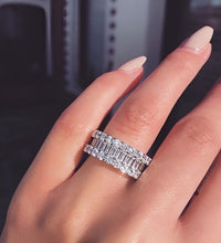 Luxury Baguette & Round Brilliant Diamond Eternity Band | 14K White Gold | Double Row Full Diamond Wedding Ring